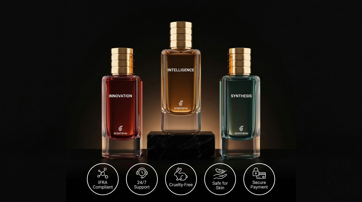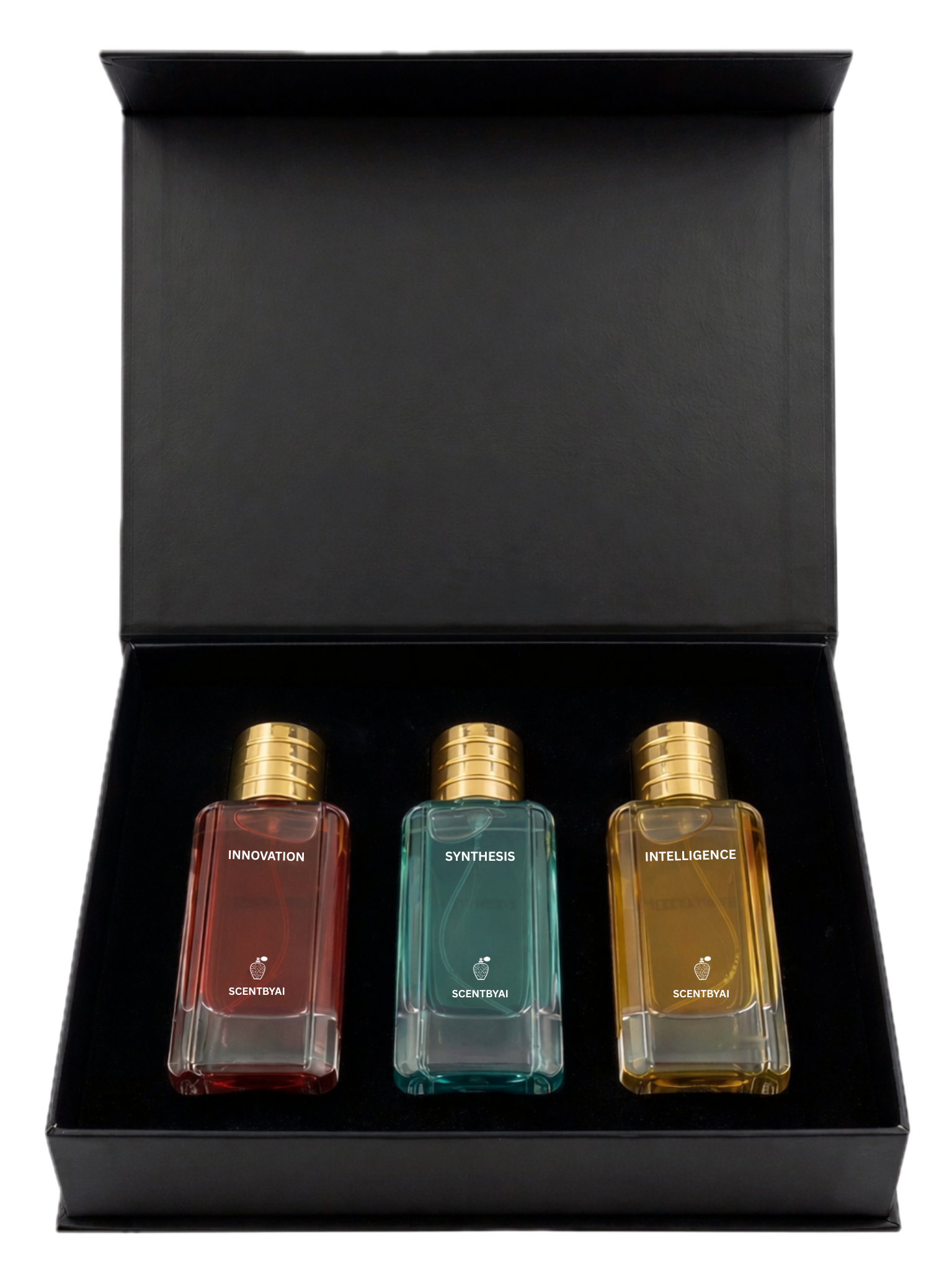 Every fragrance unfolds in three acts — top, heart, and base. Each note chosen by an AI